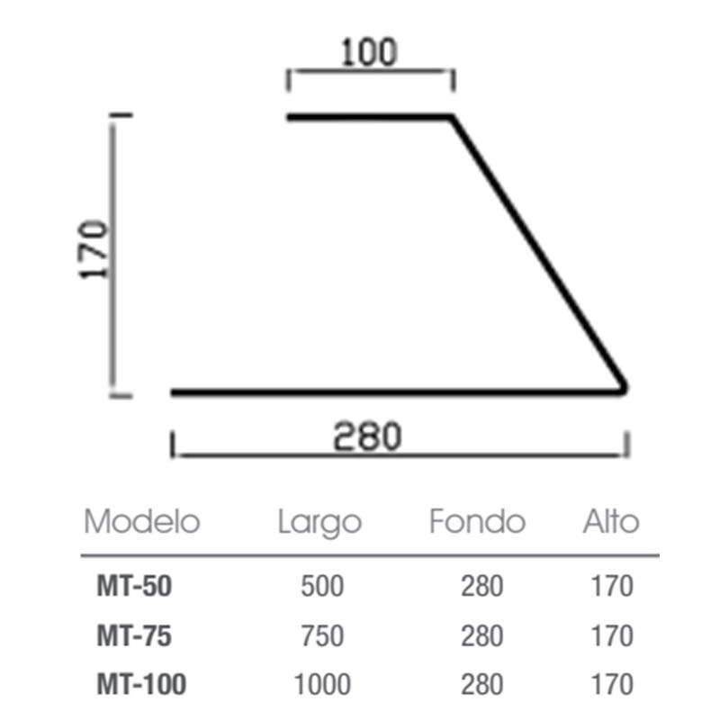 Sus dimensiones son de 1000 x 170 x 280 mm (Ancho x Alto x Profundo). Creada para los profesionales de la hostelería; pastelerías, bares, hoteles, restaurantes, bufetes…